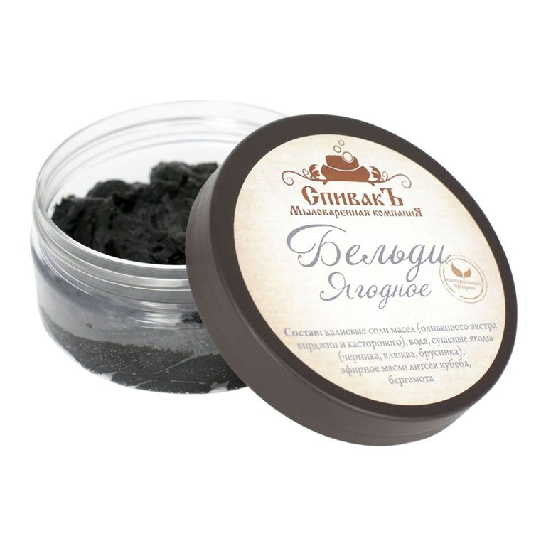 - Состав: калиевые соли масел (оливкового Extra Virgin, кокосового), вода, сушеные лесные ягоды (клюква, брусника, черника), эфирное масло литсея кубеба, лайм, бергамот.