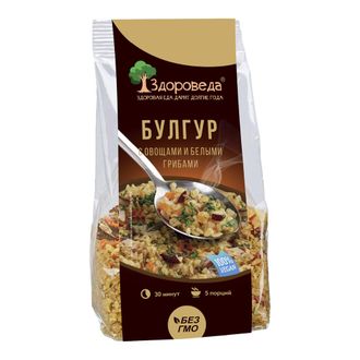 - Состав: булгур, морковь сушеная, грибы белые, перец черный молотый, асафетида, кумин, кориандр, майоран.