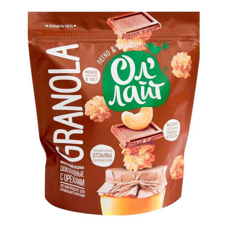 - Состав: Запеченные хрустящие мюсли (овсяные и пшеничные хлопья, сахар, растительное масло, кокосовая стружка, рисовая, пшеничная и люпиновая мука, глюкозный сироп, какао-порошок, рисовый крахмал, ячменный солод, мед натуральный, соль), бельгийский темный шоколад (сахар, какао тертое, какао-масло, эмульгатор натуральный соевый лецитин, натуральный ароматизатор), орехи кешью. Могут содержать незначительное количество кунжутных семян.