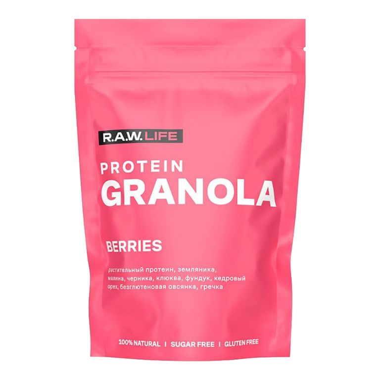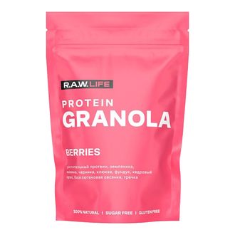 - Состав: Хлопья овсяные без содержания глютена, сироп топинамбура, кокосовое масло, фундук, взорванное зерно гречихи, смесь протеинов (гороховый белок, белок из семян чиа), кедровый орех, черника сушеная целая, земляника сушеная, малина сублимированная целая, клюква сублимированная, соль розовая гималайская, витамин Е (смесь токоферолов).