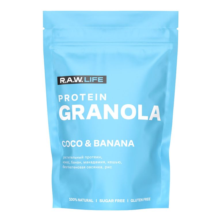 - Состав: Хлопья овсяные без содержания глютена, концентрированный сок винограда, кокосовое масло, взорванное зерно риса, смесь протеинов (гороховый белок, белок из семян чиа), сублимированный банан, кокосовая стружка, кокосовые чипсы, макадамия, кешью, соль розовая гималайская, витамин Е (смесь токоферолов).