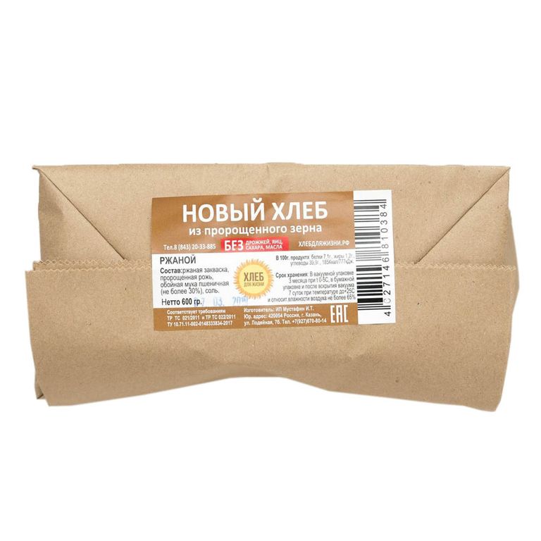 - Состав: ржаная закваска, пророщенная рожь, обойная мука пшеничная (не более 30%), соль.