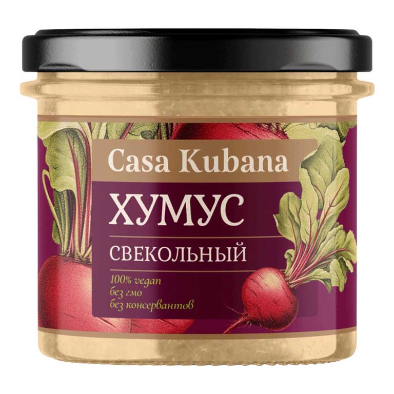 - Состав: Вода питьевая, масло подсолнечное рафинированное дезодорированное, свекла пюре, нут, свекла сушеная, кунжутная паста, сок лимона, соль морская пищевая, базилик сушеный, кориандр молотый, чеснок сушеный, перец чёрный молотый, кумин молотый.