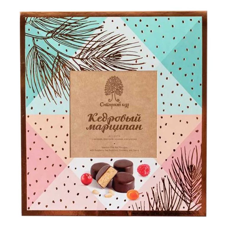 - Состав: ядро кедрового ореха, сахар, шоколадная глазурь (сахар, какао-масло, какао-порошок, эмульгатор лецитин подсолнечный), молоко сухое цельное, патока, ядро миндаля, ядро кешью, молоко сухое обезжиренное, пастила клюквенная (пюре яблочное, ягоды клюквы), пастила облепиховая (пюре яблочное, ягоды облепихи), пастила малиновая (пюре яблочное, ягоды малины), сорбитовый сироп (подсластитель), лецитин подсолнечный (эмульгатор), экстракт ванили натуральный, аскорбиновая кислота (антиокислитель). При чрезмерном употреблении может оказывать слабительное действие. Возможно наличие следов арахиса, кунжута, злаков, яичных продуктов и других видов орехов.