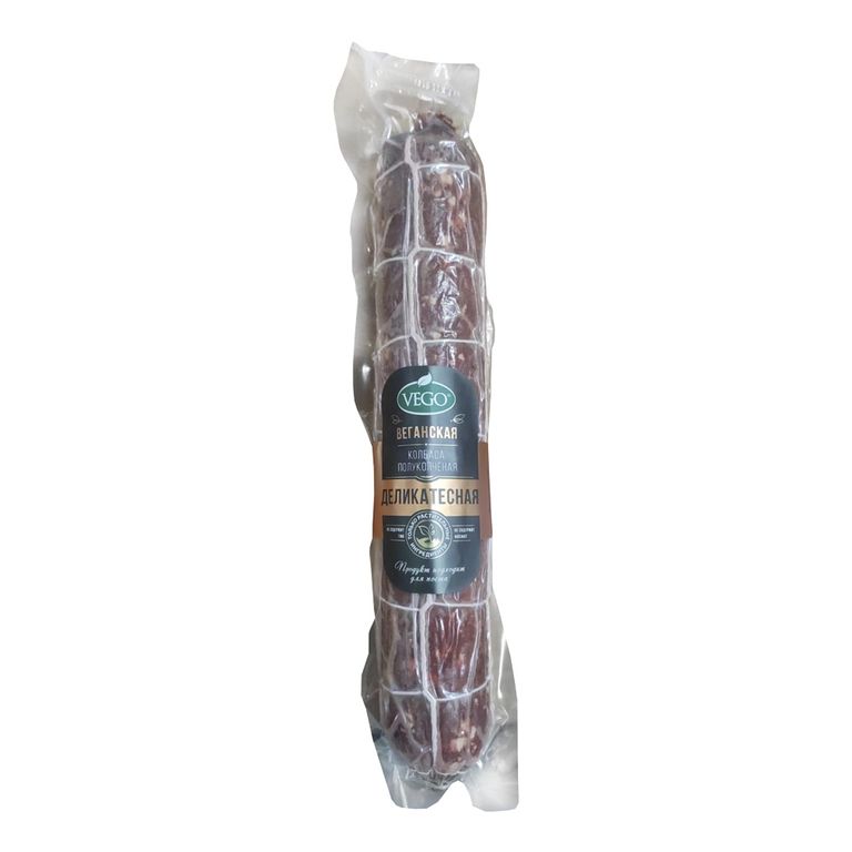 - Состав: вода, масло кокосовое рафинированное, клейковина пшеничная, соевый белок (не ГМО), пряная ароматическая смесь растительного происхождения (базилик, майоран, тростниковая клетчатка, морковная клетчатка, соль), каррагинан (морские водоросли), натуральные специи (перец душистый, перец черный, перец красный чили, семена кориандра), красители натуральные "Свекольный", "Красный рисовый".