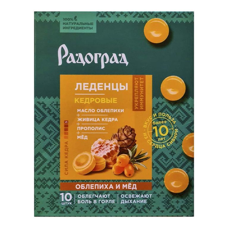 - Состав: сахар, патока крахмальная, кедра масло, живица кедра, прополис, мед натуральный, масло облепихи, лимонная кислота, витамин С.