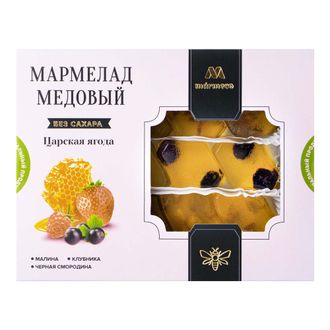 - Состав: патока, фруктоза, гречишный мёд, пектин, сублимированная чёрная смородина, клубника и малина.