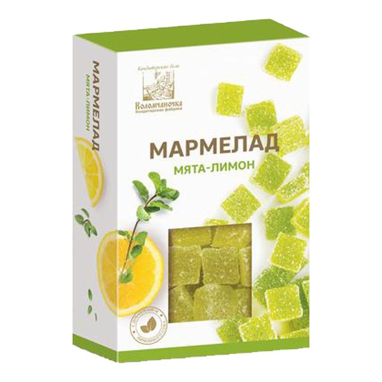 - Состав: сахар-песок, патока, желирующий агент - пектин, концентрированный лимонный сок, экстракт мяты, регулятор кислотности - кислота лимонная.