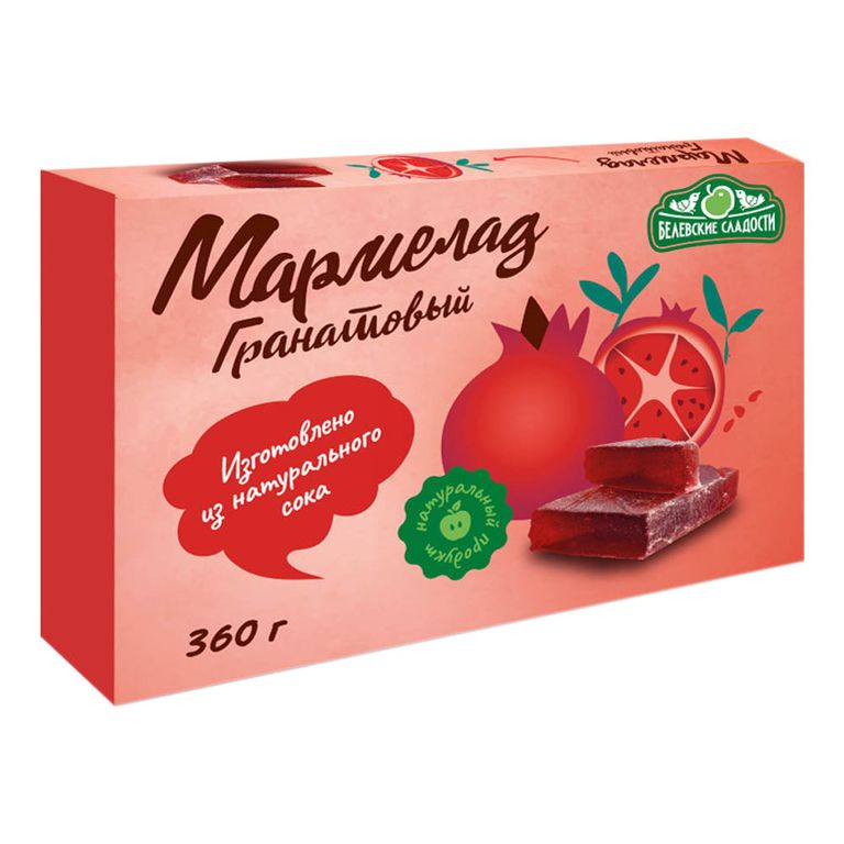 - Состав: сахар-песок, патока, пюре яблочное, желирующий агент - пектин яблочный, регулятор кислотности – кислота лимонная, концентрированный черничный сок, концентрированный гранатовый сок и Всё!