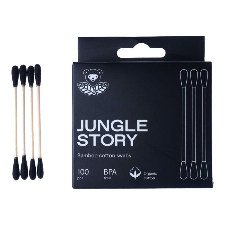 Оптимальный запас бамбуковых ватных палочек Jungle Story для всей семьи.