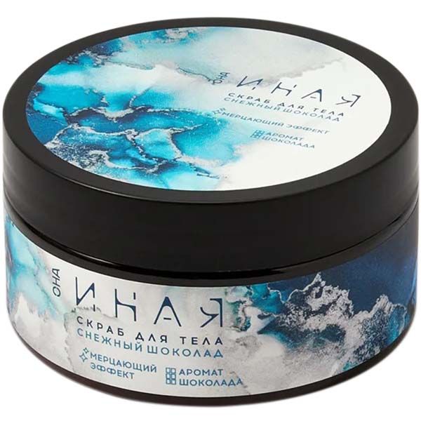 - Назначение: Мягкий скраб с мерцающими частицами и изысканным ароматом шоколада деликатно отшелушивает и очищает кожу. Масло карите, экстракты кофе и фукуса дарят коже мягкость и упругость. Когда уход за собой превращается в праздник!