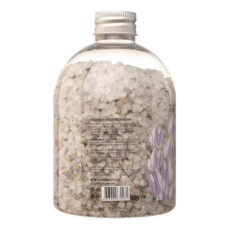 - Состав: Sea Salt (соль морская), Lavandula (цветы лаванды), Anthocyanins (экстракт черной моркови).