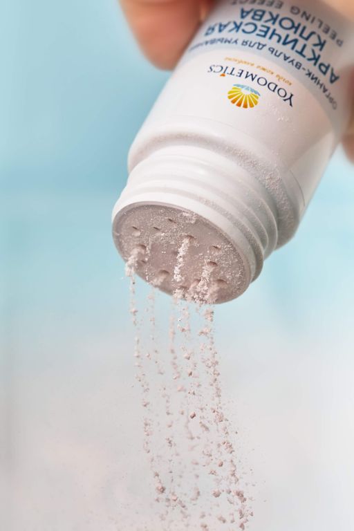 - Состав: рисовая мука, натрия лаурил сульфоацетат, мочевина, салициловая кислота, янтарная кислота, тритерпеновая кислота клюквы арктической, экстракт коры дуба, экстракт листьев березы, экстракт шалфея, бетулин, калий йодистый.