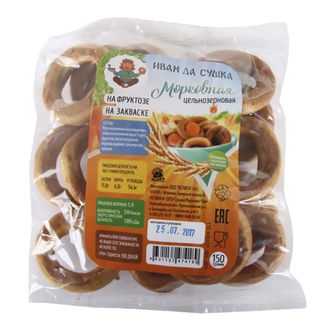- Состав: мука пшеничная цельнозерновая, закваска пшеничная (мука 1 сорт), фруктоза, масло кукурузное, морковь сушёная, соль морская, куркума.