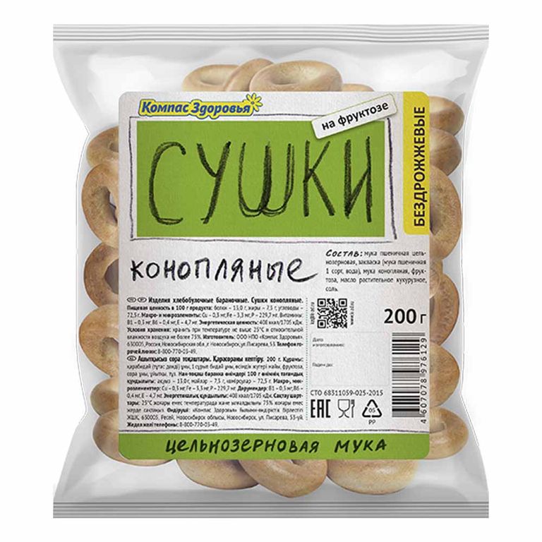 - Состав: мука пшеничная цельнозерновая, закваска (мука пшеничная 1 сорт, вода), мука конопляная, фруктоза, масло растительное кукурузное, соль.