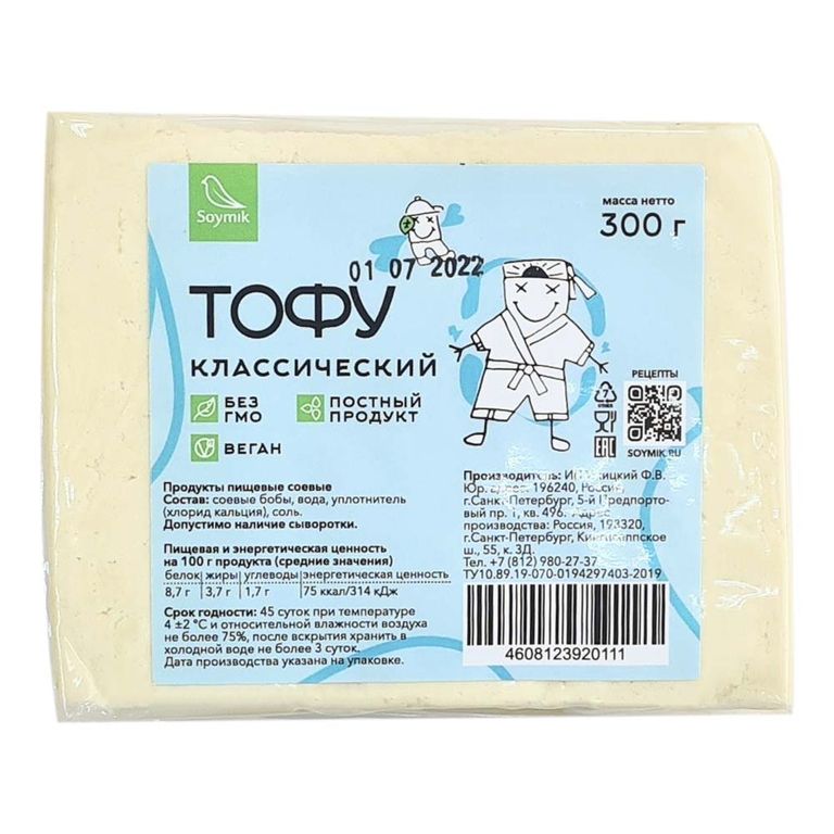- Состав: соевые бобы, вода, свертывающее вещество (хлористый кальций), соль.